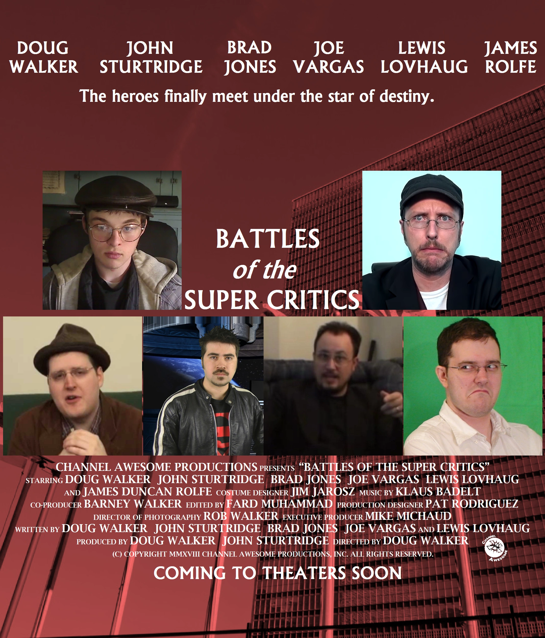 Battles of the Super Critics is an upcoming 2018 film featuring the super critics on YouTube and some of the other critics on YouTube. The production will be seen on YouTube as a film and released to theaters.