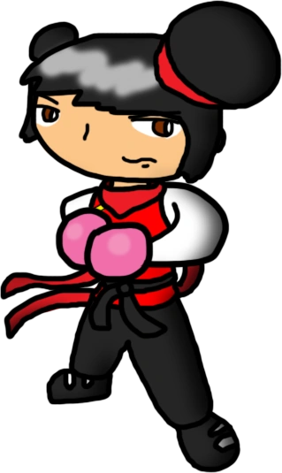She wears a qipao during her travels in China and wears a black belt. She also has a red neck scarf. Ever since she moved to America, she wears black pants and black sneakers with white laces. As half-Bomberman, she has white arms and pink round-shaped hands.