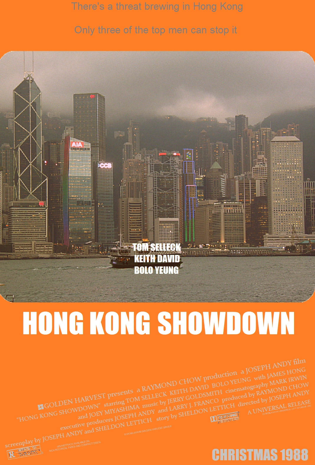Hong Kong Showdown (Chinese: 间谍游戏) is a 1988 martial arts espionage film directed by Joseph Andy, a joint Hong Kong and American production produced by Golden Harvest and starring Tom Selleck, Keith David and Bolo Yeung as special CIA agents sent to crack down on a terrorist spy ring in Hong Kong.