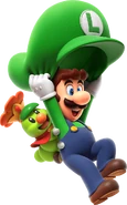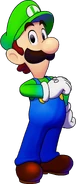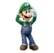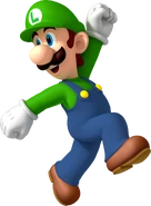 A 2D artwork of Mario, Luigi and Toad running together.
