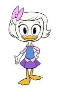 Webby (voiced by Kate Micucci) - Webby is slightly older and smarter, with her character wearing a pink and purple sweater vest, a pink skirt, and a smaller hairbow on her right-side, while she is revealed to be an enthusiastic adventure fan and Clan McDuck historian who idolizes Donald Duck as one of the greatest adventurers of all time.