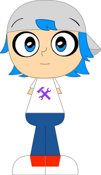 Ryan is a boy of average height, he has blue hair and eyes, he sports a grey cap, a white shirt with a purple mechanical nut, dark blue pants, and black shoes with purple soles (Later replaced with red n white shoes by the 3rd season), his appearance is based on Ryou Onuki, an OC of HiHiPuffyAmiYumiRules 2001