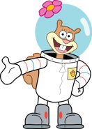 Sandy is portrayed as an intelligent anthropomorphic flying squirrel who wears an astronaut-like diving suit and lives underwater. She comes from Texas and speaks in a Southern drawl. Sandy is a member of the Gal Pals, a friend group with Karen, Mrs. Puff, and Pearl.