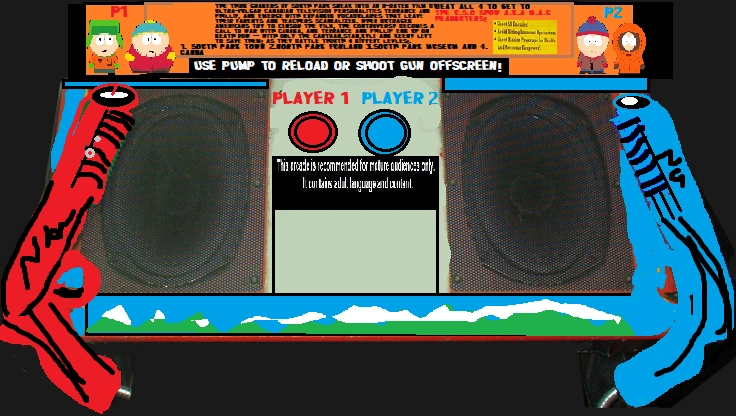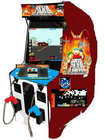South Park: Bigger, Longer & Uncut is a a rail shooter arcade game using a light gun. It was released by Acclaim Entertainment,Iguana Entertainment on July 10,1999 and is based on the film of the same name. The shows creators Trey Parker and Matt Stone received one of the arcade cabinets as a gift from Acclaim Entertainment the game is noted for its graphic content and strong lifelike violence, peppered with heavy amounts of black humor and pervasive and vulgar language. It is the most successful light gun style game produced by Acclaim Entertainment.