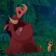 Timon is an insouciant and fast-talking meerkat who is known for claiming Pumbaa's ideas as his own. Pumbaa is a warthog with flatulence problems but is also a brave warrior, charging into battle like a battering ram, and taking great offense if anyone who's not his friend calls him a pig, at which point he exclaims "They call me Mister pig!"—a reference to Sidney Poitier's line "They call me Mister Tibbs!" from the 1967 film In the Heat of the Night and then screams as he charges. Unlike real meerkats, Timon can walk on his hind legs, while in real life, meerkats walk on all four legs and can only stand on their hind ones.