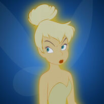 She has a talent for pots and pans, a love of "lost things", and is braver than most fairies when it comes to getting close to humans. She tends to blame things on other people when she's frustrated, even if it is her fault. Of course, her temper can often get the better of her, but she’s always a selfless and dedicated friend when the chips are down.Tinker Bell loves challenging work, and especially loves anything made of metal — her workshop is even a human tea kettle. She is generally a hard worker, but occasionally enjoys playing games like fairy tag. Before the books started, Tinker Bell had spent a long time away from pots and pans to be with Peter Pan. However, when Peter brought Wendy (whom Tinker Bell refers to as "the Wendy") to Never Land, Tinker Bell was heartbroken and went back to Pixie Hollow after the adventure with the Darling children was over. (The Trouble With Tink).