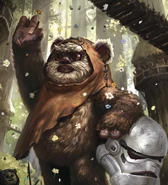 Wicket Wystri Warrick, commonly known as Wicket W. Warrick, is a fictional character from the Star Wars franchise, first introduced and portrayed by Warwick Davis in the 1983 film Return of the Jedi. Warrick appeared in two made-for-television movies, an animated series, and promotional media for Star Wars from 1983 to 1986, all of which are a part of the Star Wars Legends continuity. Davis reprised the role in the 2019 theatrical film The Rise of Skywalker, appearing in a brief cameo. Wicket is a diminutive teddy bear-like creature known as an Ewok, living on the forest moon of Endor and eventually participating in the Battle of Endor as an ally of the Rebel Alliance.